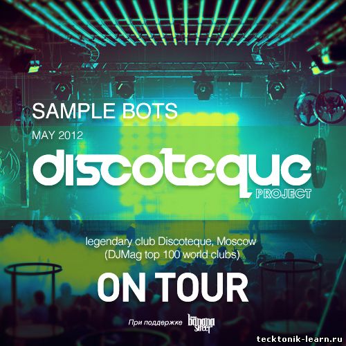 Альбом: Discoteque on Tour. March 2012 — Sample Bots Mix Жанр,стиль: House Дата релиза: 04/04/2012 Битрейт аудио: 320 kbps / 44100Hz / Joint Stereo Тип рипа: mixed Аудио кодек: MP3 Размер: ~ 136 Mb